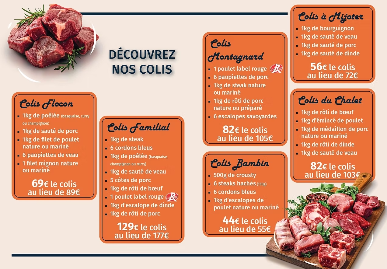 Pour faire plaisir à chacun de vos proches, Barre à Viande a concocté de délicieux collis... Descendez, vous verrez !
